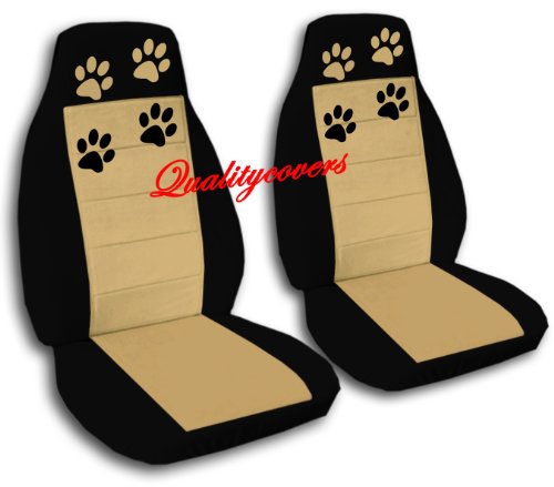 2 Black and Tan seat covers with Paw Prints for a 2005 to 2007 Honda Accord. Please notify us if you have Side Airbags!