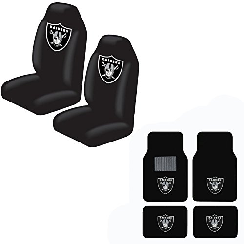 A 6 Piece NFL Gift Set: 2 Highback Seat Covers, 2 Front Carpet Floormats, and 2 Rear Carpet Floormats. - Oakland Raiders