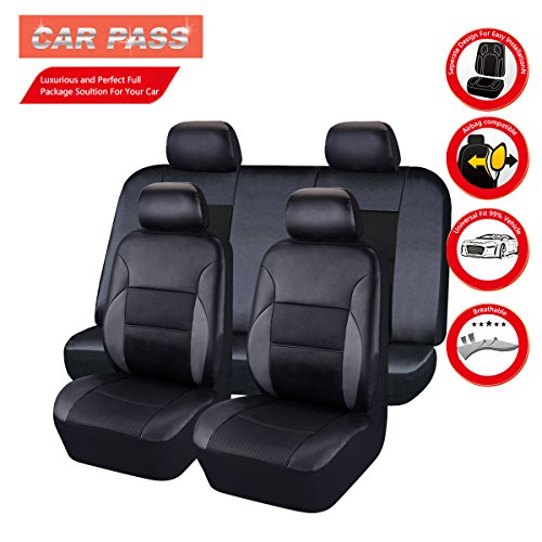 All images of CAR PASS - 11PCS Luxurous PU Leather Automotive Universal Seat Covers Set Package-Universal fit for Vehicles With Super 5mm Composite Sponge Inside,Airbag Compatible (Balck And Black)