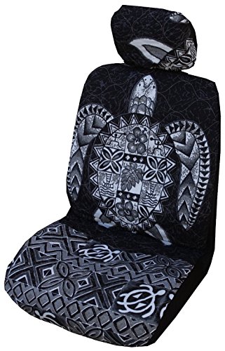 Side Airbag Compatible; Black Big Honu Hawaiian Separate Headrest Cover; Made in Hawaii