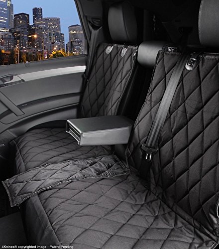 Split Bench Seat Protector Cover with LATCH Openings - 60 40 or 50 50 & Middle Seat Belt- Fitted Design (Regular, Black)