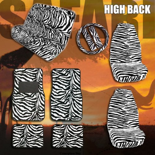 11 pc YupbizAuto Brand Safari Zebra High Back Car Mats Seat Covers Steering Wheel Cover Set