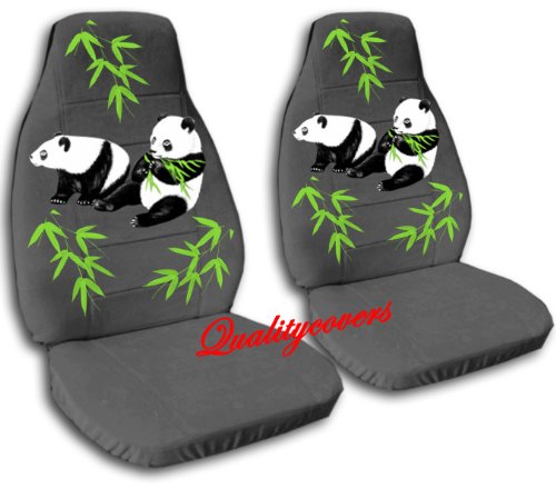 All images of 2 charcoal "Panda bear" car seat covers, for a 2003 Ford Focus