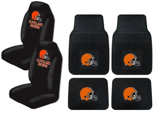 A Set of 4 NFL Universal Fit Front All-Weather Floor Mats and A Set of 2 Universal Fit Seat Covers - Cleveland Browns