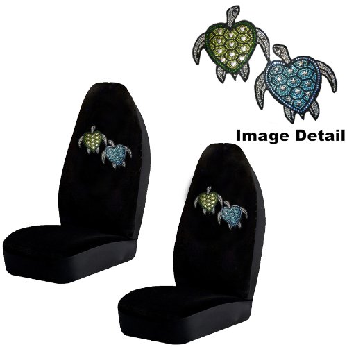 All images of Blue & Green Turtles w/ Stars & Hearts Gem Crystal Studded Rhinestone Bling Car Truck SUV Front Universal-Fit Bucket Seat Covers - PAIR