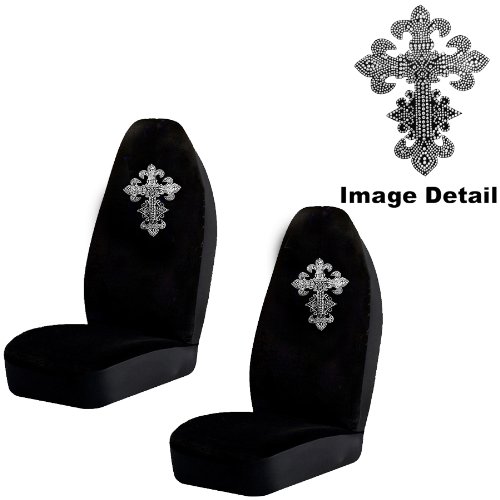 Greek Cross Gem Crystal Studded Rhinestone Bling Car Truck SUV Front Universal-Fit Bucket Seat Covers - PAIR