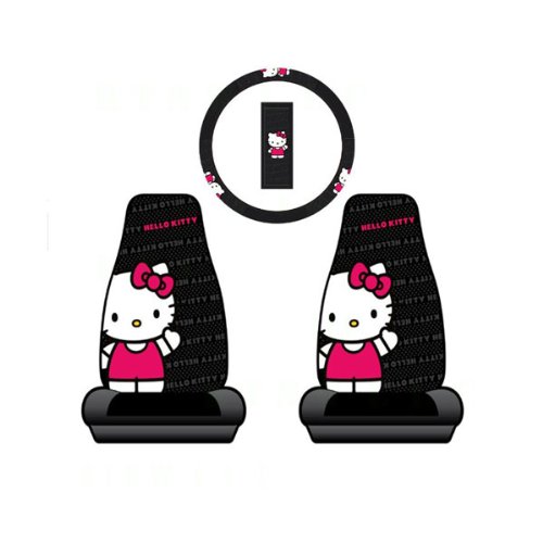 Hello Kitty 2 Car Seat Cover + Steering Wheel Cover Set- Ribbon
