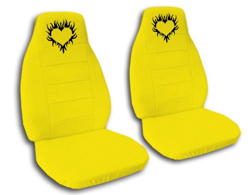 2 Front Yellow seat covers with a Burning Heart for a 2011 to 2012 Hyundai Elantra Sedan. Side airbag friendly.
