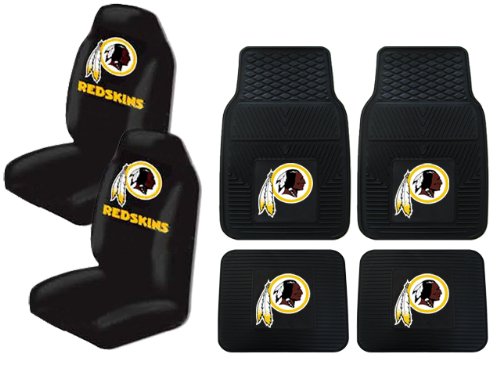 A Set of 4 NFL Universal Fit Front All-Weather Floor Mats and A Set of 2 Universal Fit Seat Covers - Washington Redskins