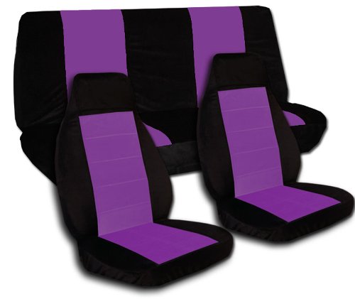 Complete set of black and purple seat covers, steering wheel cover included. Universal set. Will not fit if you have side airbags