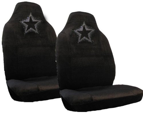 Empty Star Gem Crystals Studded Rhinestone Bucket Seat Covers - Pair