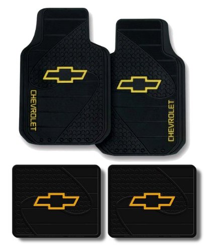 Premium Chevy Gold Factory Style RUBBER Trim-To-Fit Molded Auto Car Truck 4PC Floor Mats SET - BONUS DETAILING WASHMITT