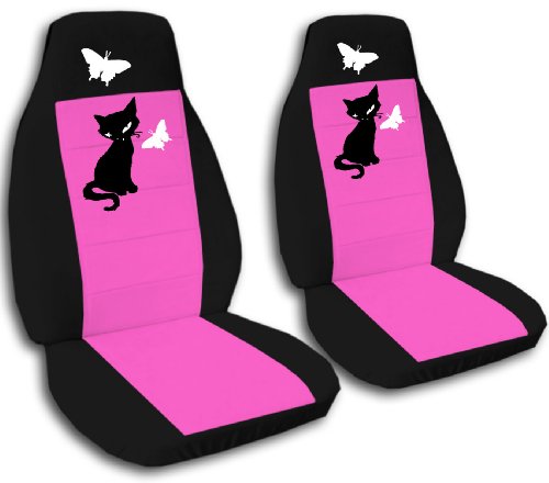 2 Black and Hot Pink Kitten seat covers for a 2013 Dodge Charger. Side Airbag Friendly + Steering wheel cover included