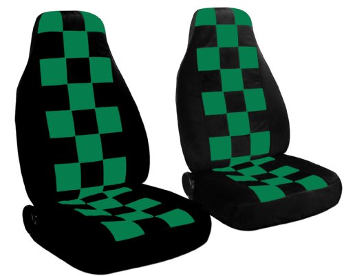 2 Black seat covers with Black and Teal Checkers for a 2013 Mini Cooper Clubman