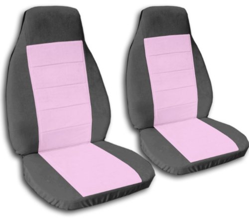 2 Charcoal and Sweet Pink seat covers for a 2005 to 2009 Chevrolet Trailbalzer with intergrated seat belts.