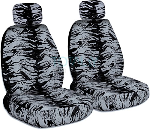Animal Print Car Seat Covers w 2 Separate Headrest Covers: Silver Snow Tiger - Semi-custom Fit - Front (29 Prints Available)