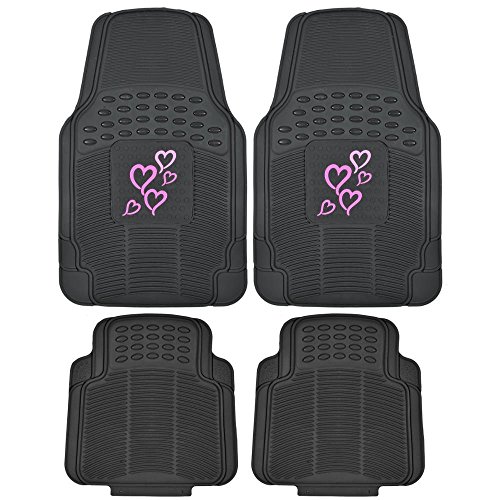 BDK Universal Fit 2-Piece Car Mat with 4 Pink Hearts - Rubber (Love Story)