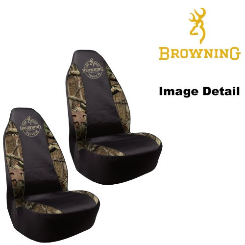 All images of Browning Arms Company White Buckmark Brand Camo Logo and Browning The Best There Is Script Car Truck SUV Universal-fit Poly-Spandex Bucket Seat Covers - PAIR