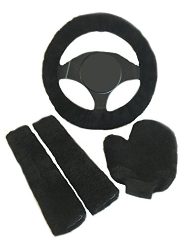 Dr. Sheepskin - Car Care Bundle - Steering Wheel Cover, 2 Seat Belt Covers & Wash Mitt - Black